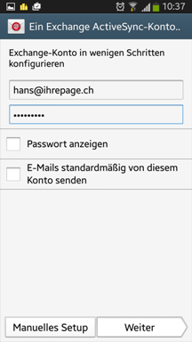 Weitere Infos in Bezug auf MS Exchange ActiveSync finden sie auch noch hier:  Configure Microsoft Exchange ActiveSync for Email Accounts.