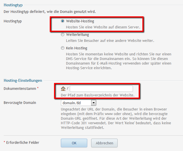 3. Geben Sie den Domainnamen an und wählen Sie als Hostingtyp "Website-Hosting" aus