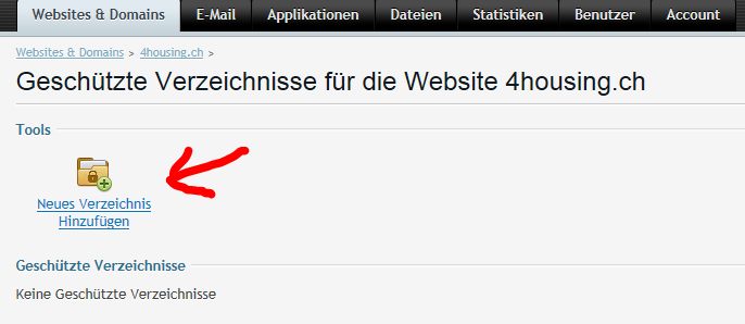 6. Danach ist das Passwortgeschützte Verzeichnis erstellt uns sie müssen nun noch die gewünschten Benutzer dazu einrichten welche darauf Zugriff haben sollen.