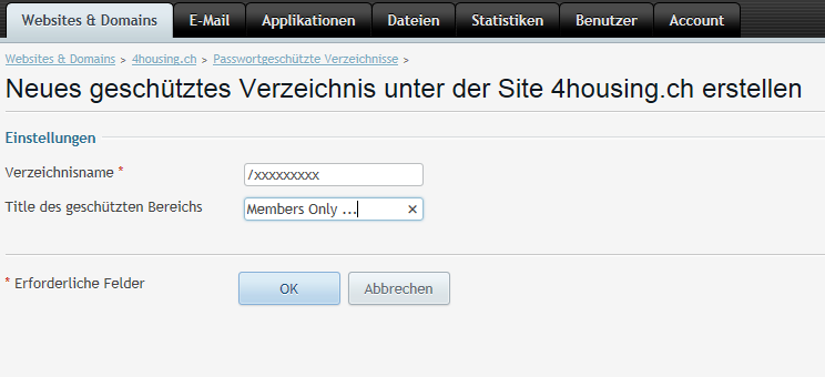 5. Geben den Namen des gewünschten Passwortgeschützen Verzeichnis ein inkl. einem Titel